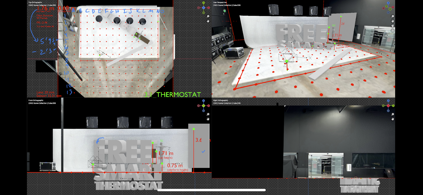 We even designed a grid like system in the 3D space that would align with our practical set. Given that we had a single shoot day, this grid system allowed us to place our motion control unit in a spot that it could stay in all day.